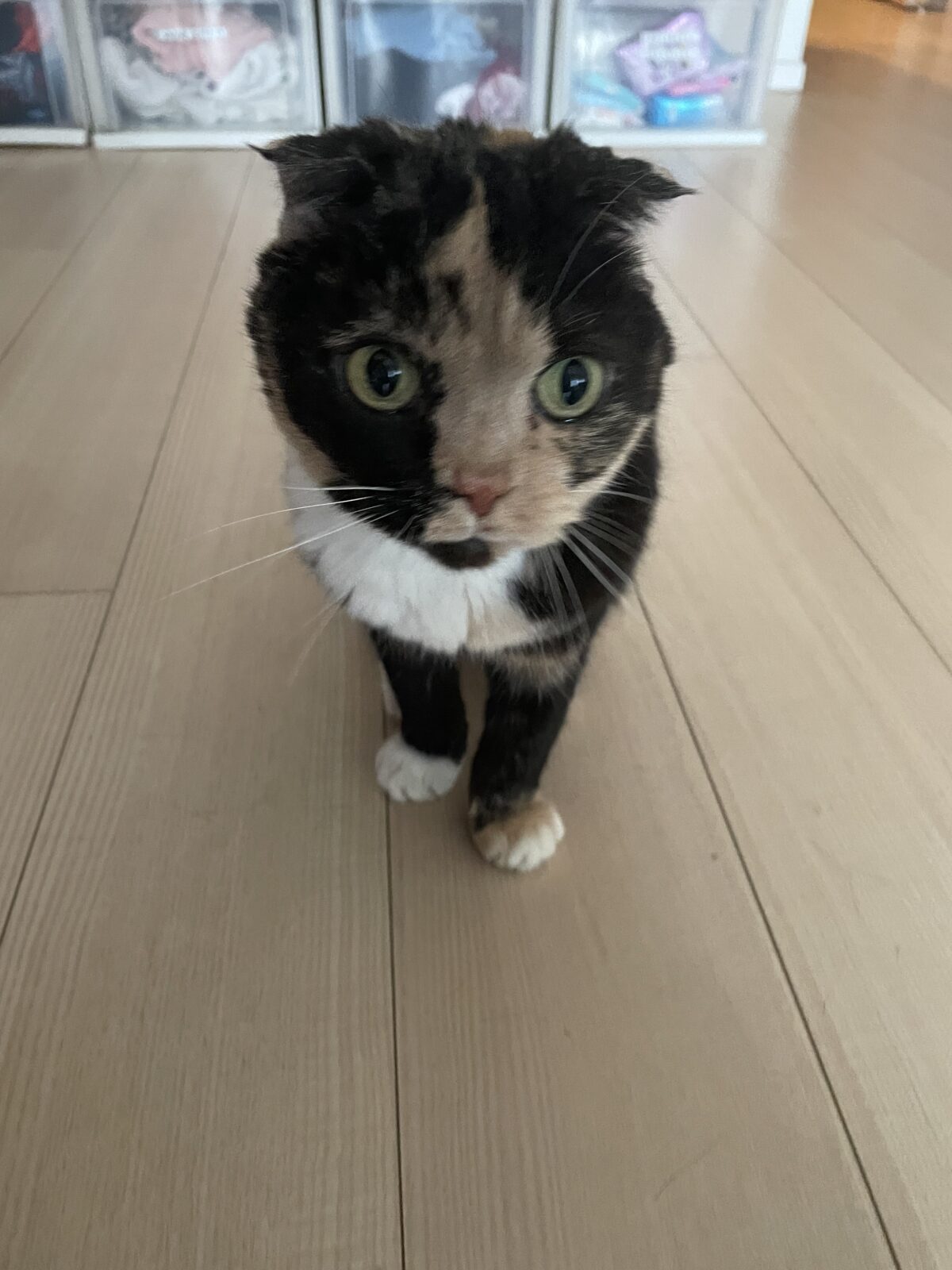話しかけると、にゃーとお返事してくれるモリーちゃん、お話も楽しいね。