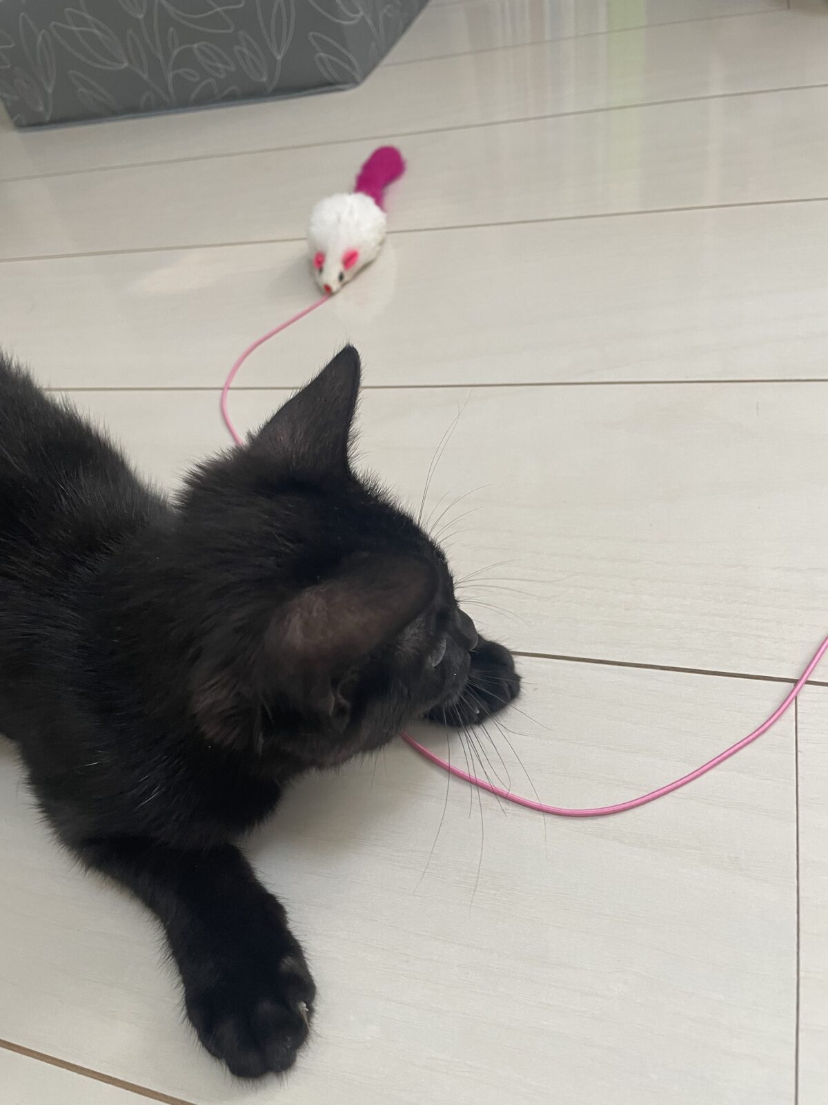 ネズミを追いかけたり咥えたりする本能がしっかり備わっていた夏目ちゃん
