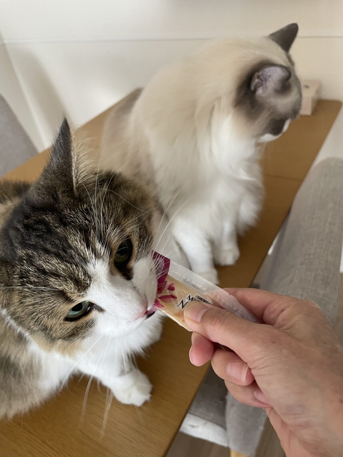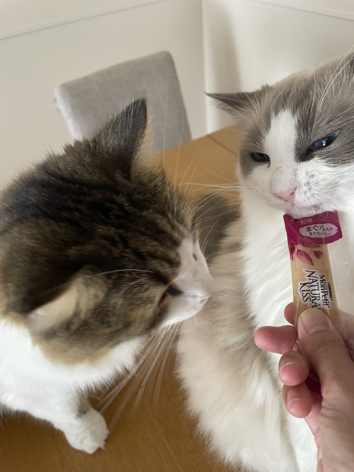 ブラシもおやつもおもちゃ遊びも、何でも仲良しでした