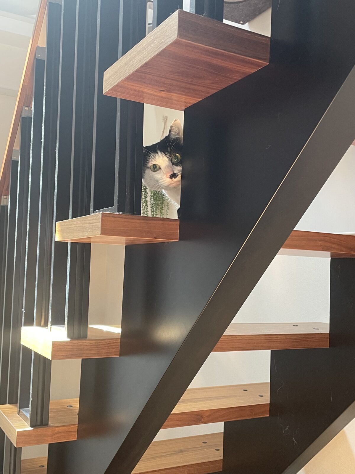 窓のカーテンにいるかと思いきや、リビングの椅子にいたり…