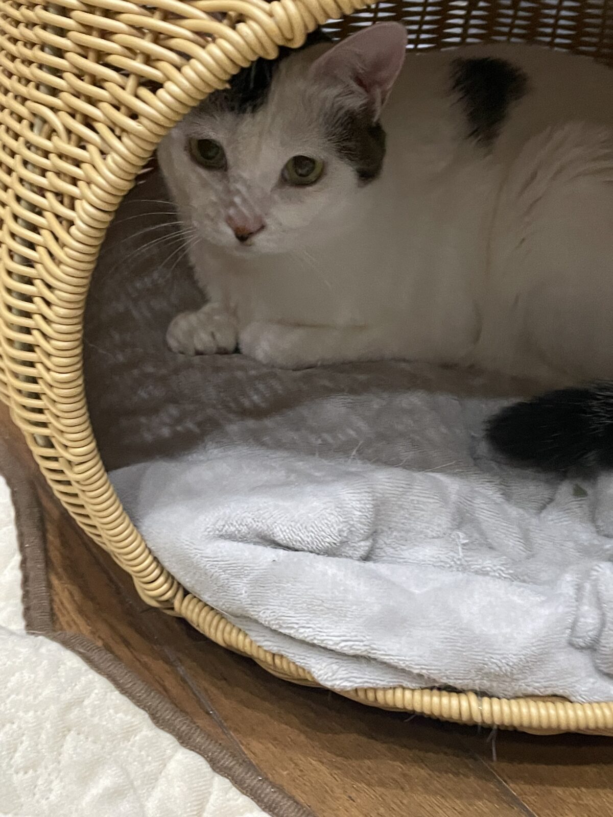 1歳のシロキジすずちゃんと、0歳のハチワレしゅうくん