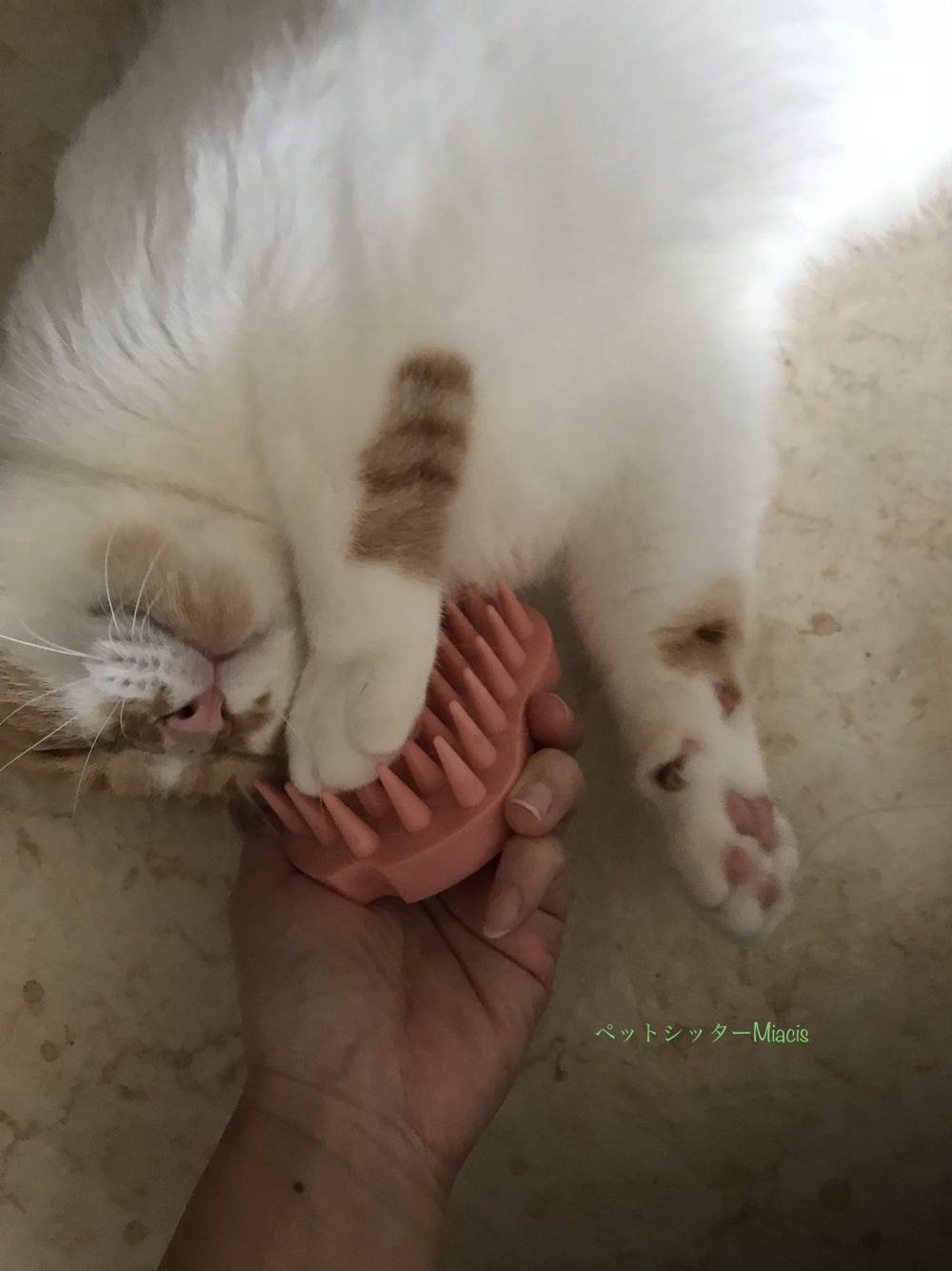左手にくしくしで小鉄君のマッサージです。気持ち良さそうですよね(´艸`*)