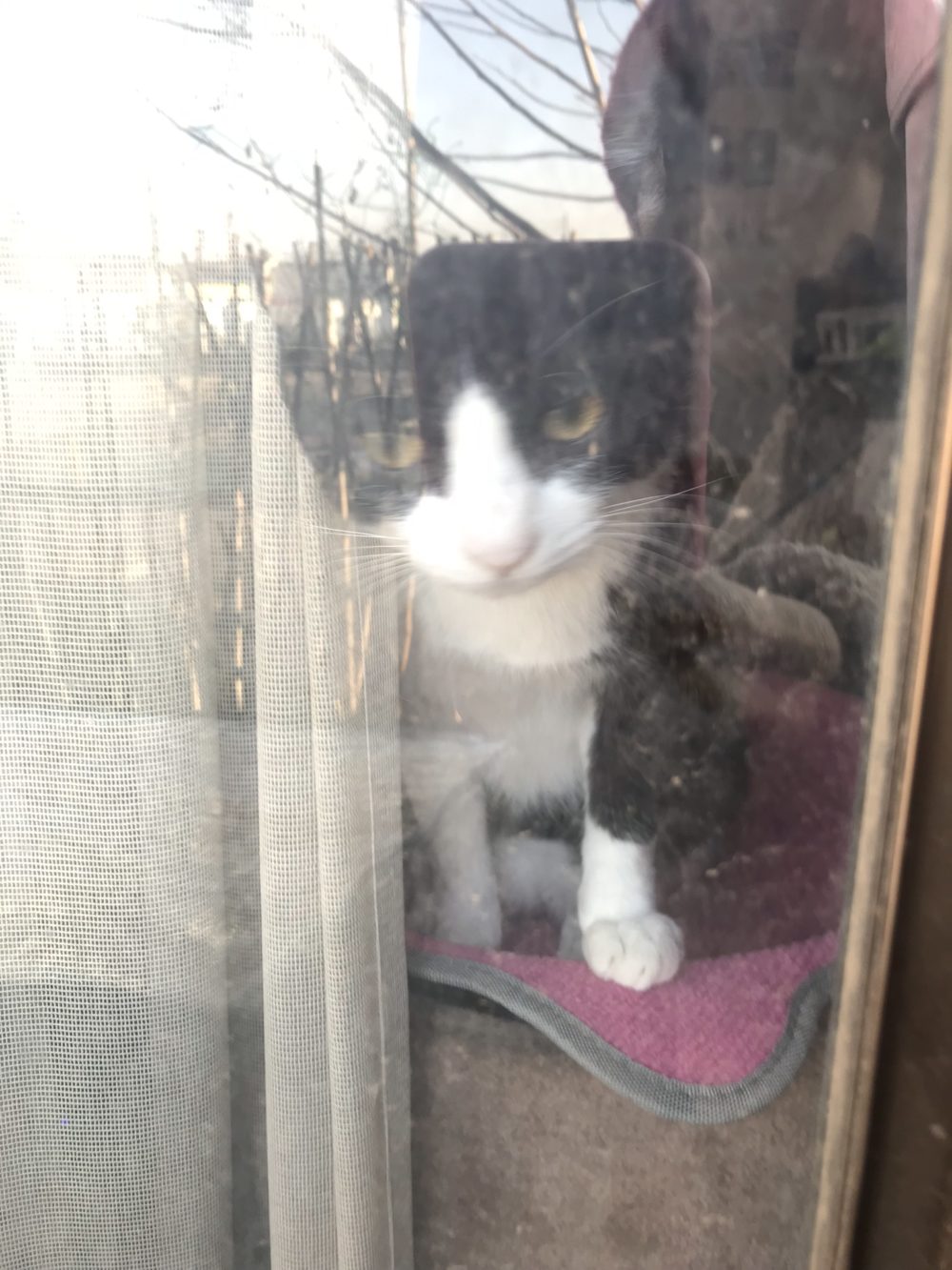 はち君は朝晩の雨戸あけ閉め時より窓越しにお出迎えしくれるように