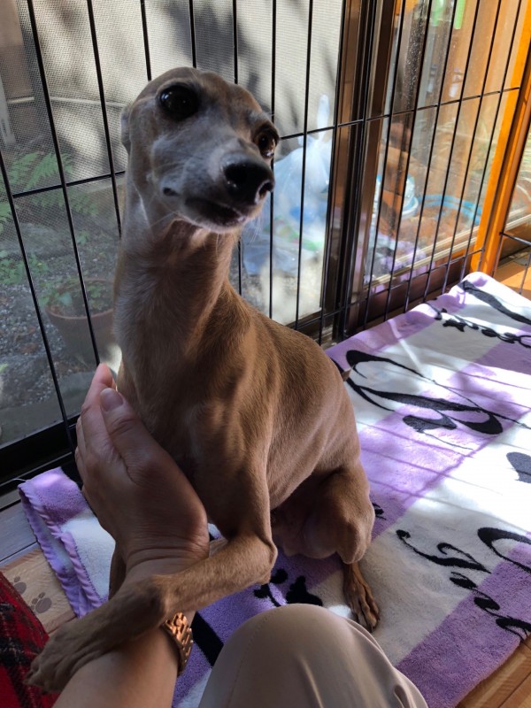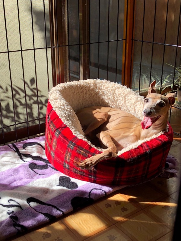 とてもおとなしく人なつっこいので 持ってこられたお布団にいつもちゃんと座っていました