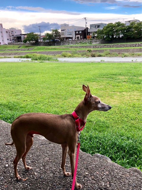 お天気の合間を見計らい 犀川にお散歩に朝夕と行きました。