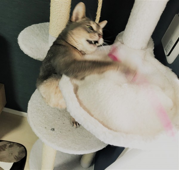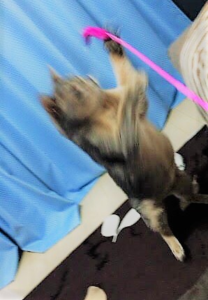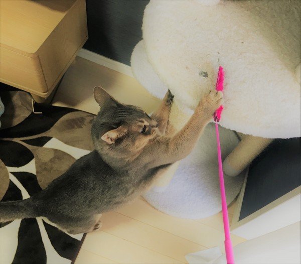 と良い感じに猫じゃらしにじゃれるユーリ君