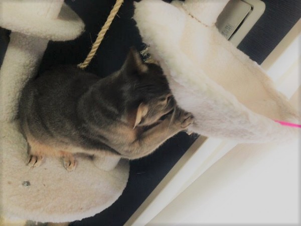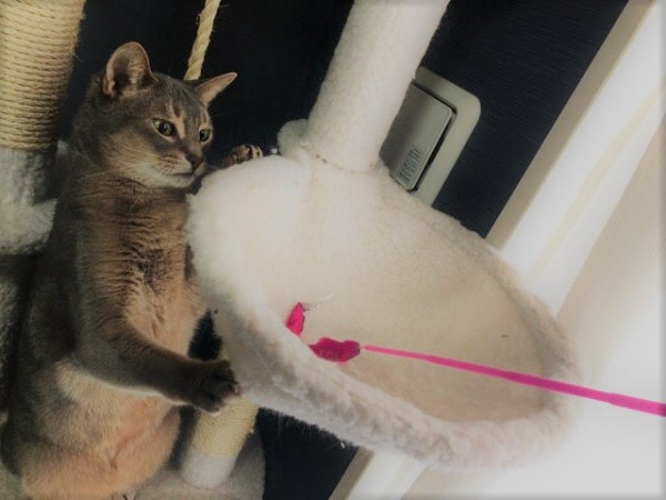 そして猫じゃらしを使って上からハンモック状のところを動かすと
