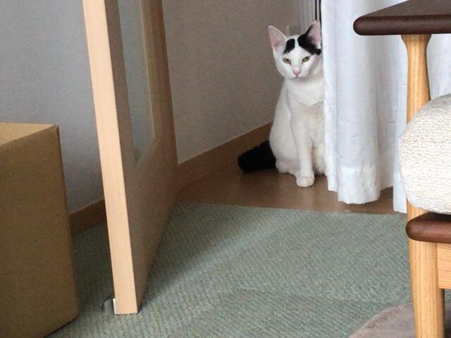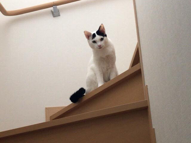 ドアに近づくとささーっと逃げ、階段からこちらを見ていました(;・∀・)