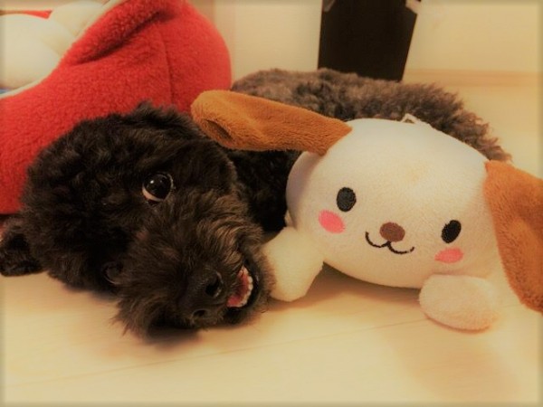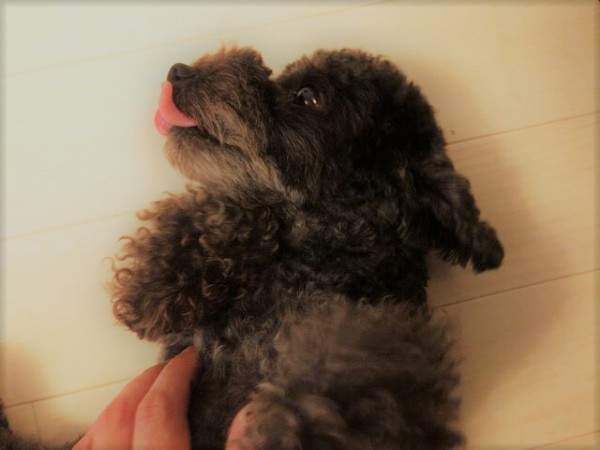 トイプードルの小梅ちゃんはとっても人懐っこく前回のお世話でもすぐにおなかを見せて