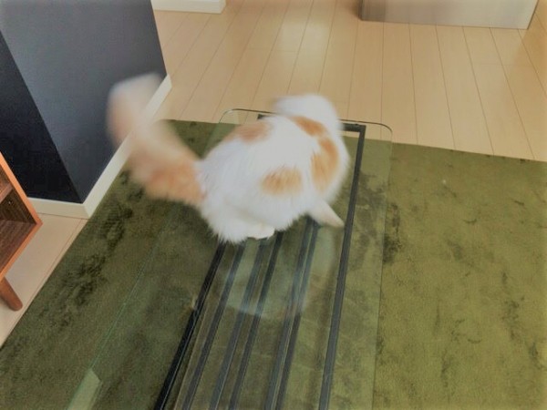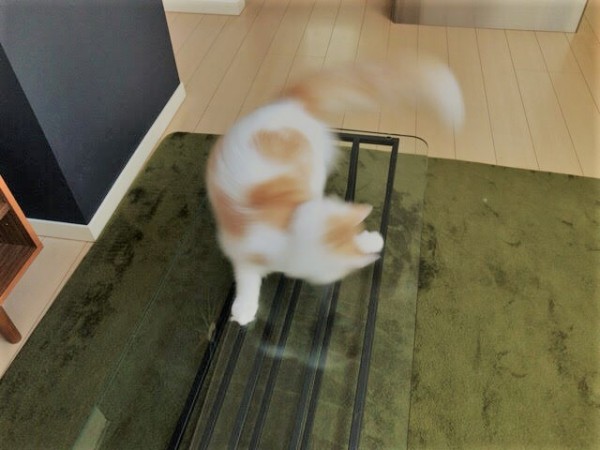 そしてなぜかテーブルの上でわんちゃんみたいにくるくると回り始めました(‘ω’)ノ