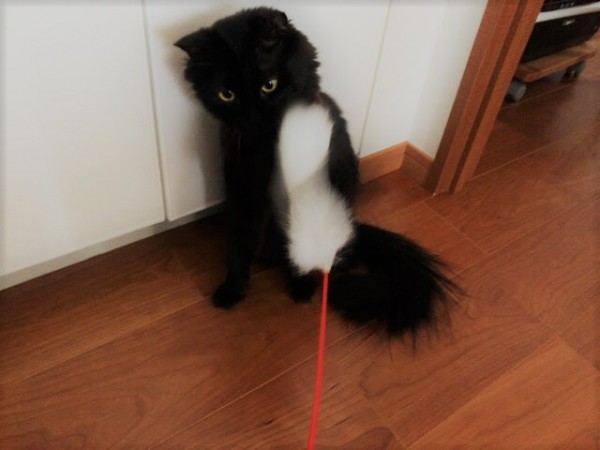 でも近づくとまだ警戒していて、すぐにベッドの下に行ってしまいます。