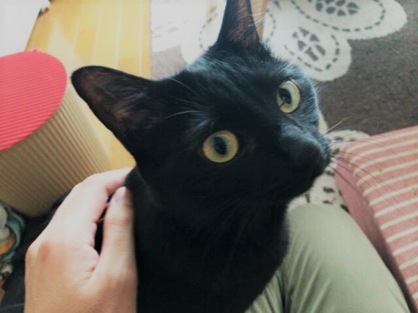黒ちゃんはケージでこちらをじっと見ていました。