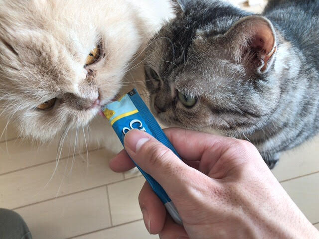 最終日のちゅーるの様子、よもぎちゃんはもっと欲しかったようです(笑)