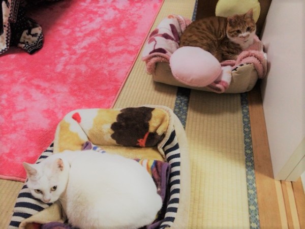 2日目は小次郎君リラックスモード(*´ω`*)、姫ちゃんはクロスカウンターのような猫パンチと