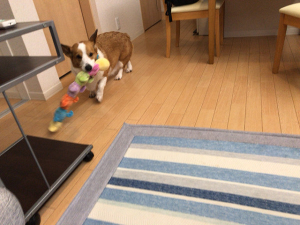 遊びたいときは必ずおもちゃを目の前まで咥えて持ってきて落とします(笑)