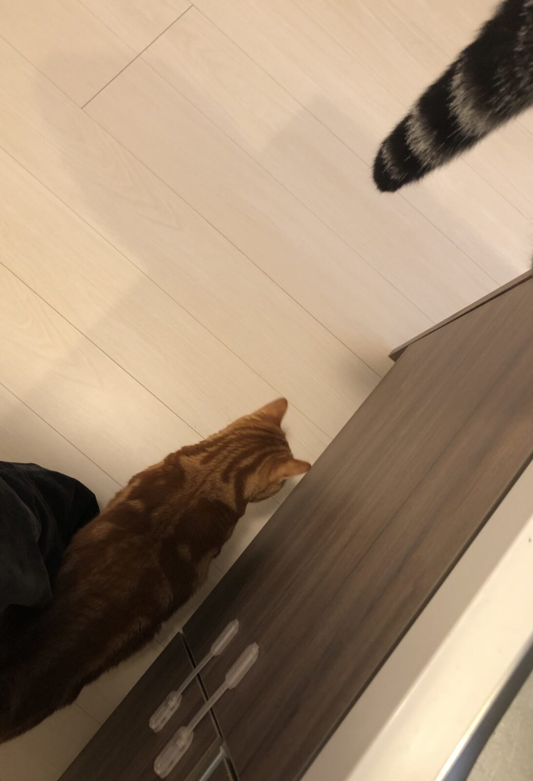 ごはんの準備を始めると、さっそく「ごはん~、ごはん~」攻撃開始です。