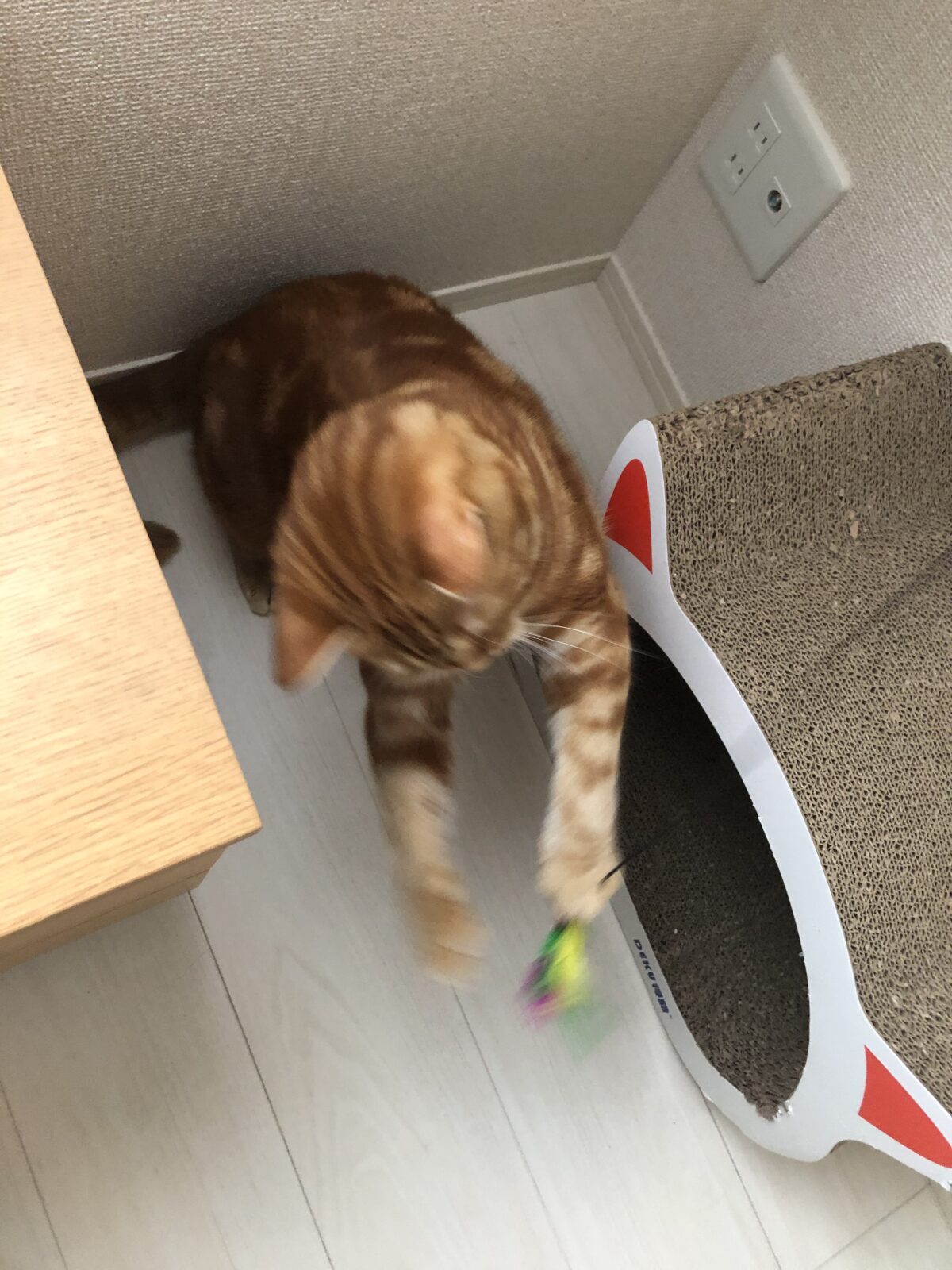 テツヤくんが物凄い勢いでおもちゃに食いつき、