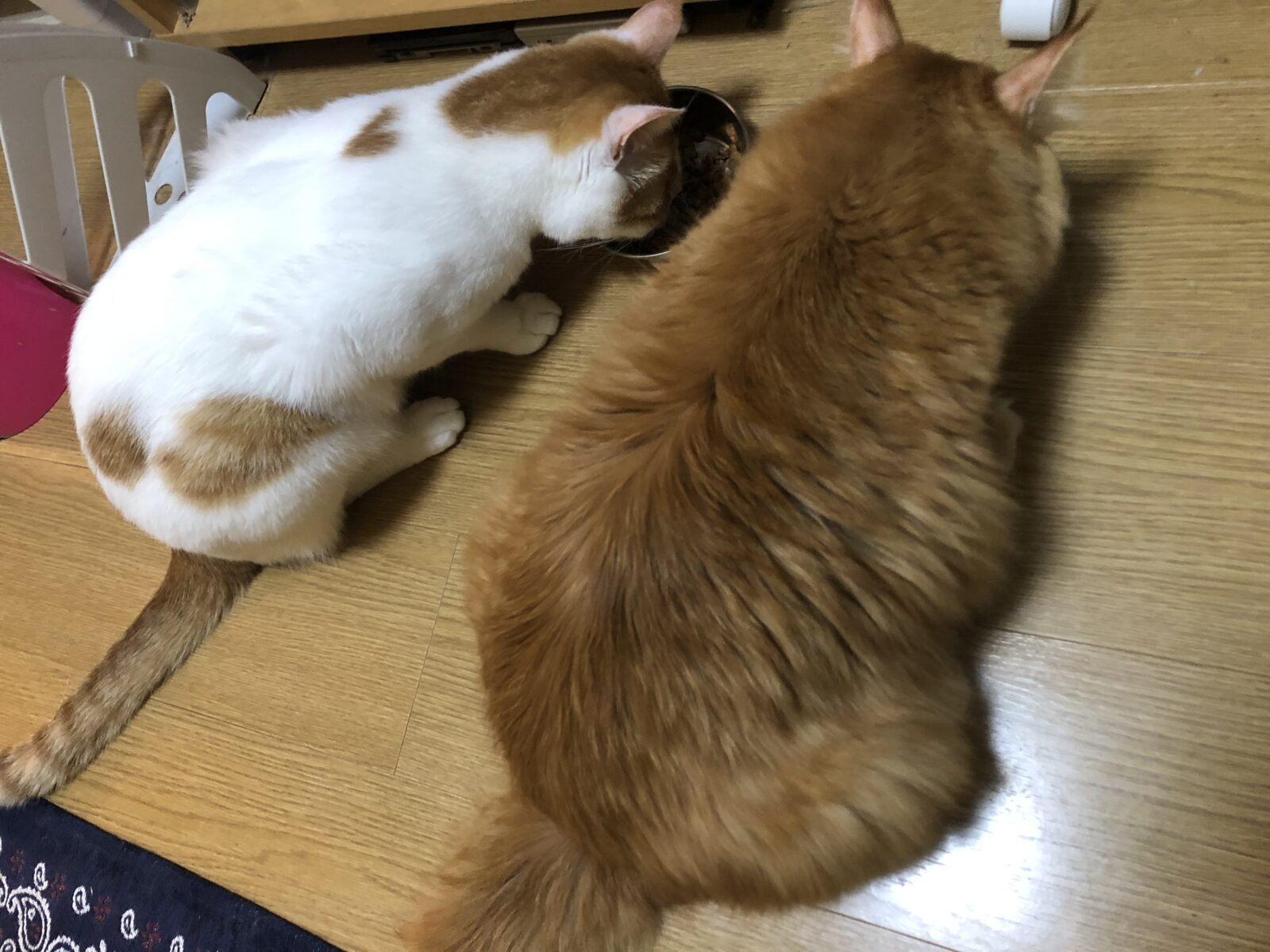 遊び終わって少し休んだところで、うにくんとほたてくんは2回目のお食事タイムです。