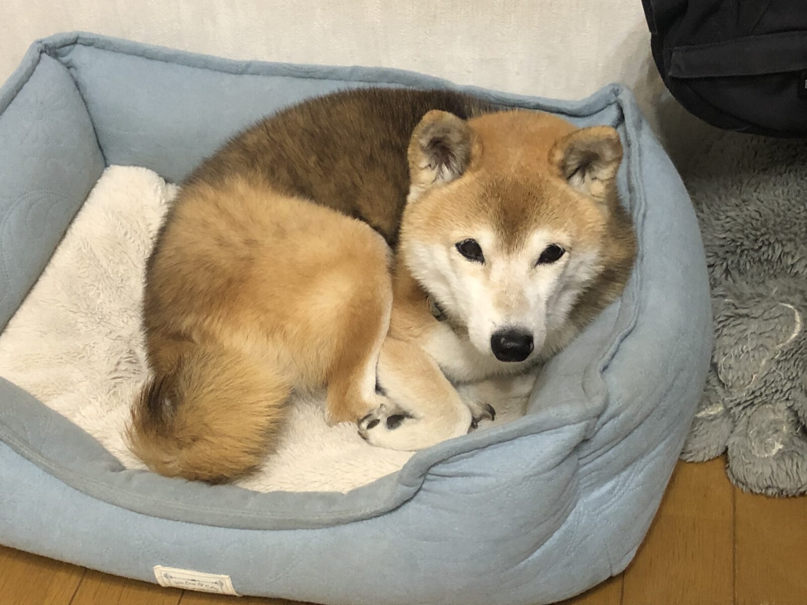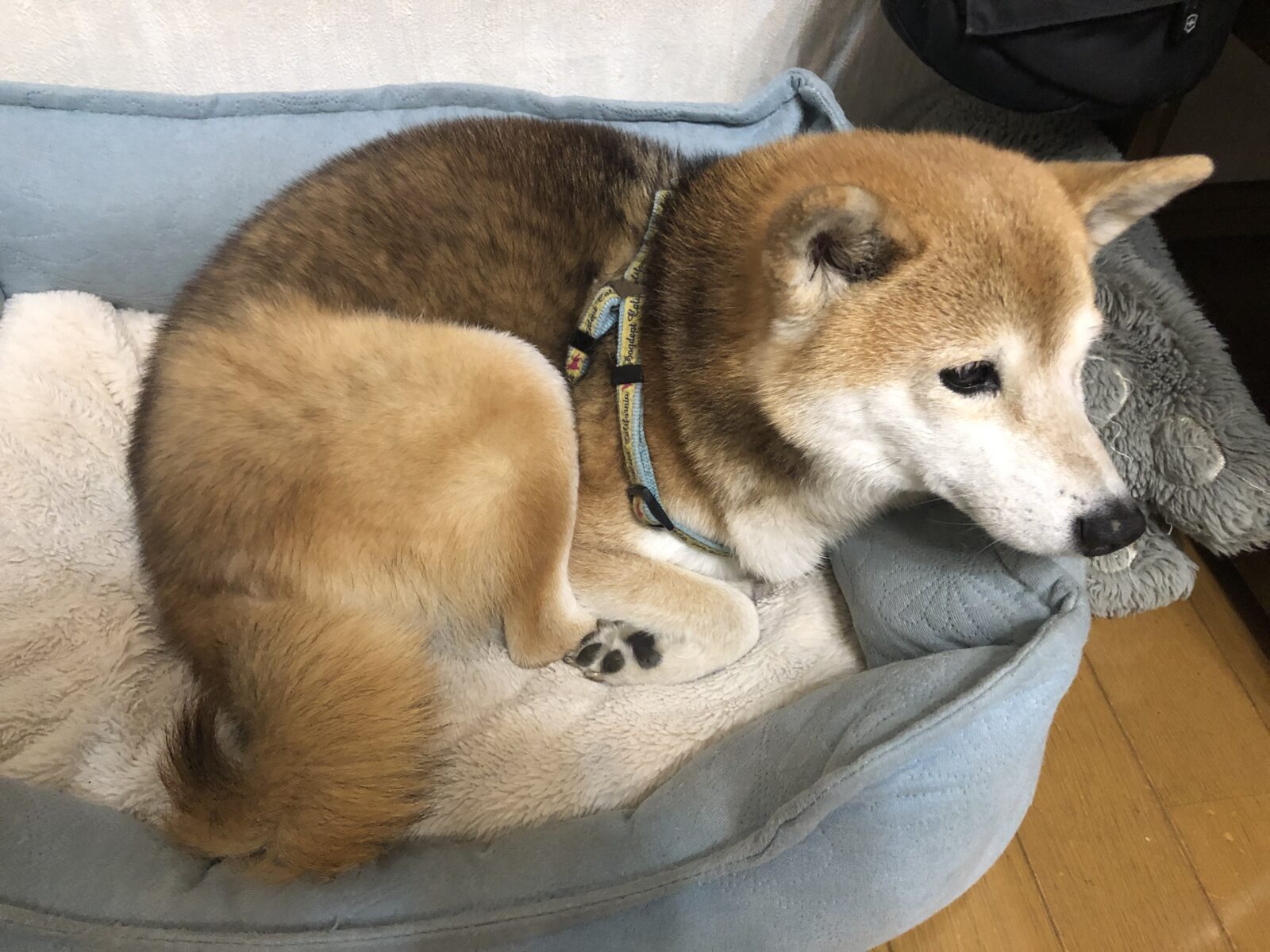 帰宅後、アイちゃんは定位置に戻ってお休みの時間です。