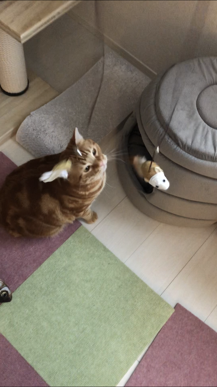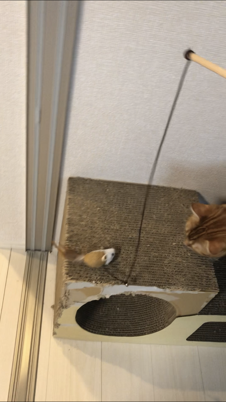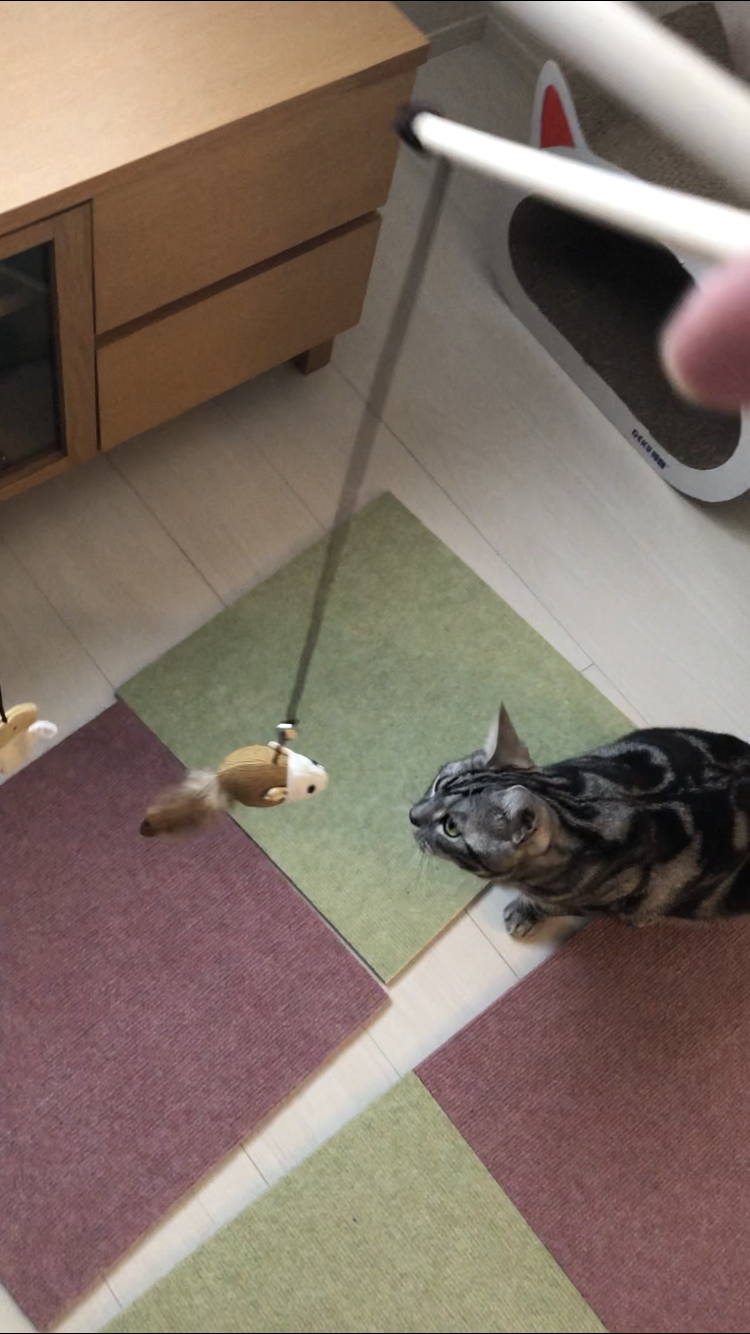 なかなかおもちゃに食いつこうとしません。