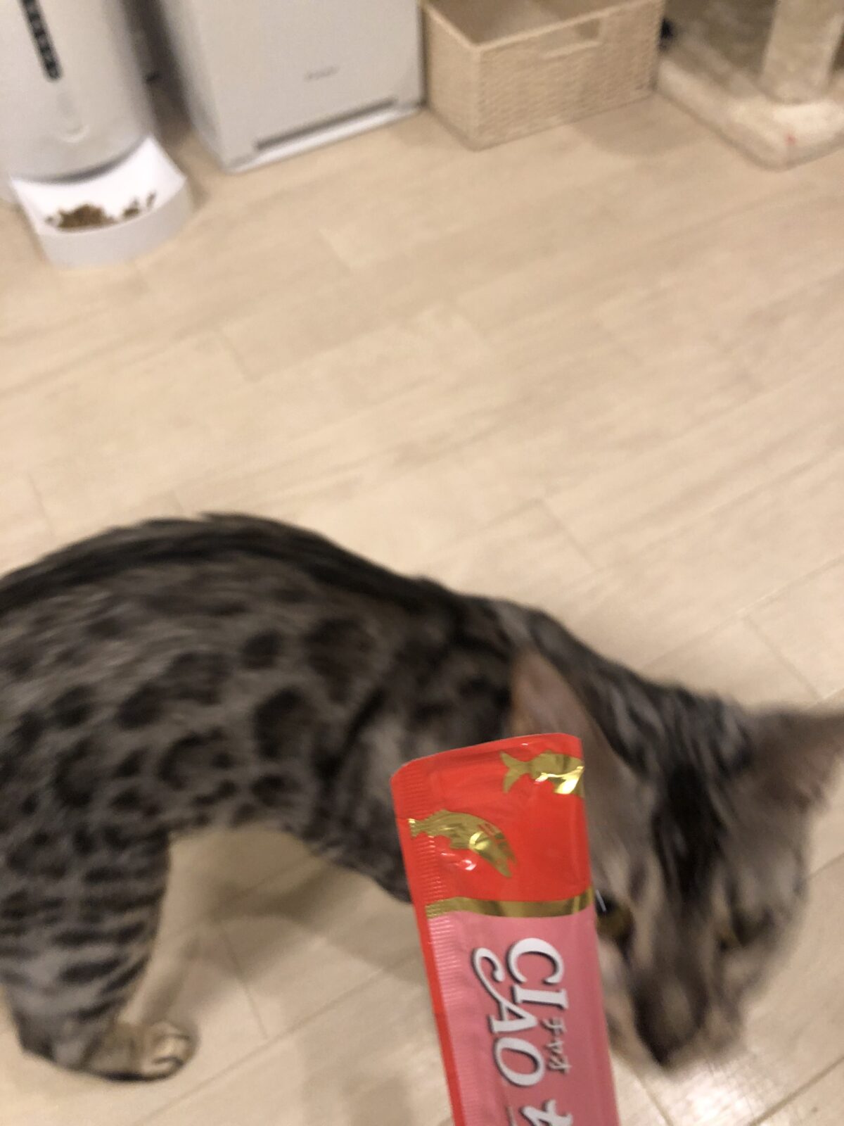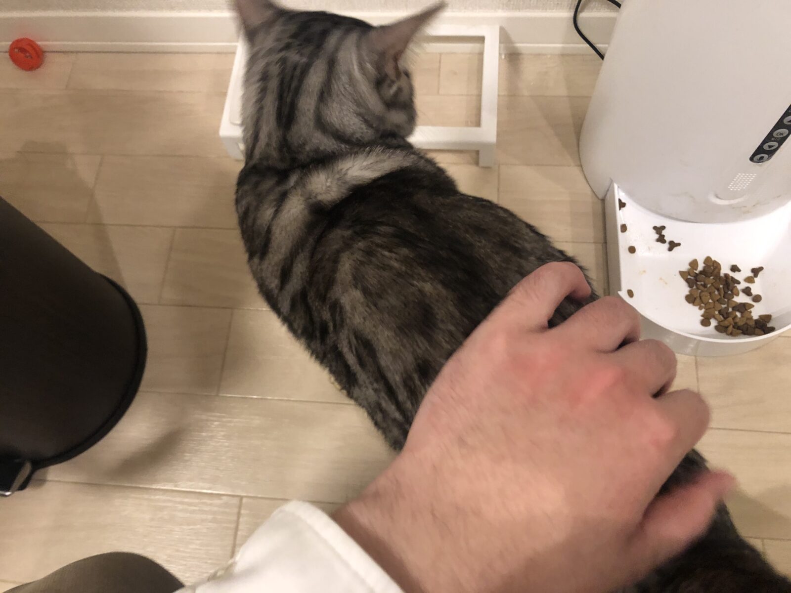 ちゅーるをあげつつ遠慮なくナデナデさせてもらいました^^