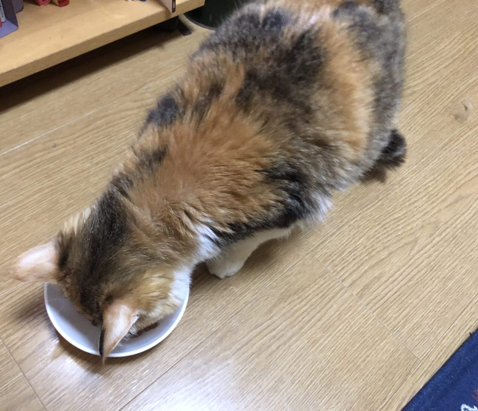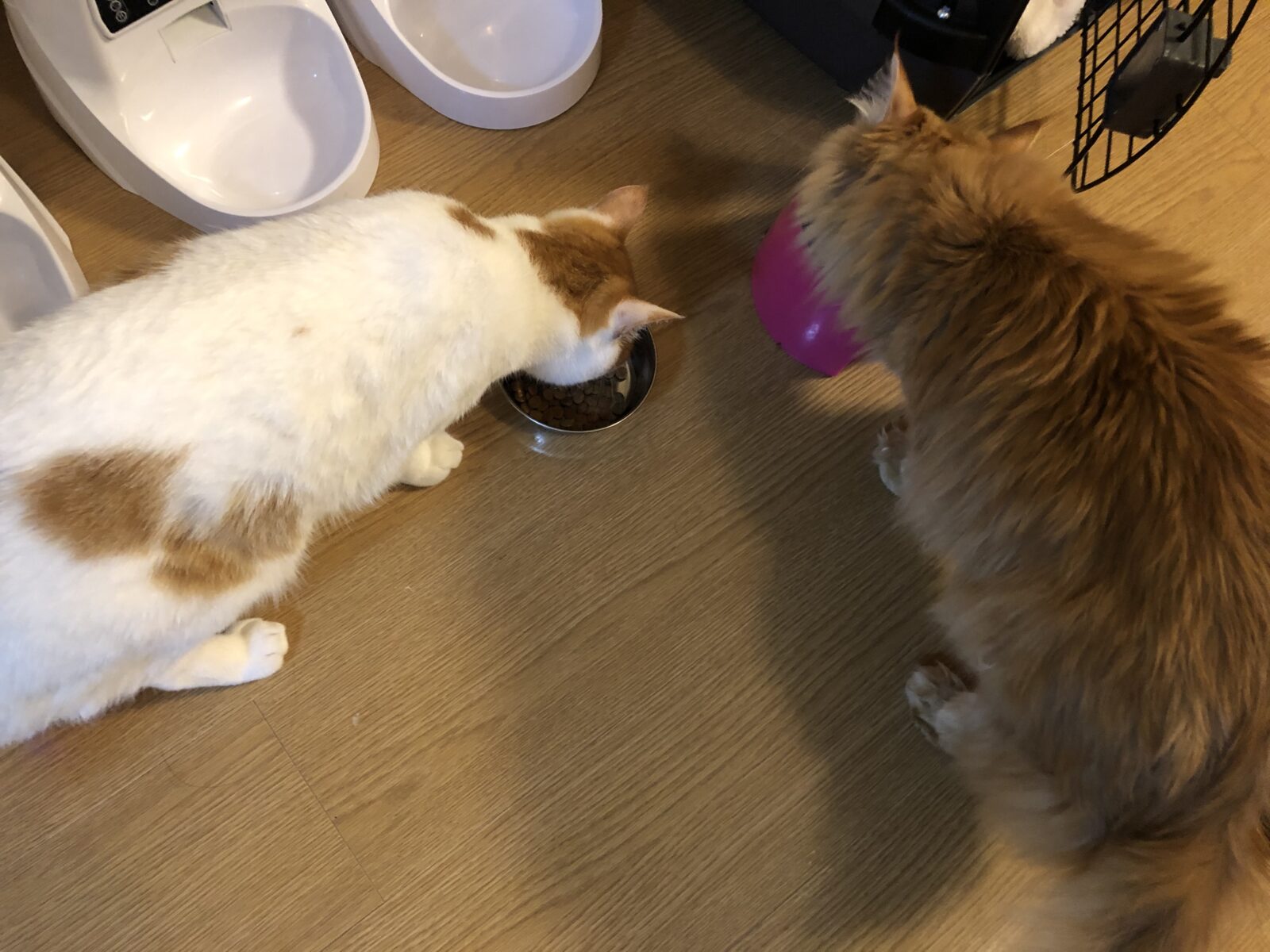 準備が完了するや否や、元気いっぱいにもぐもぐ食べる猫ちゃんたち。