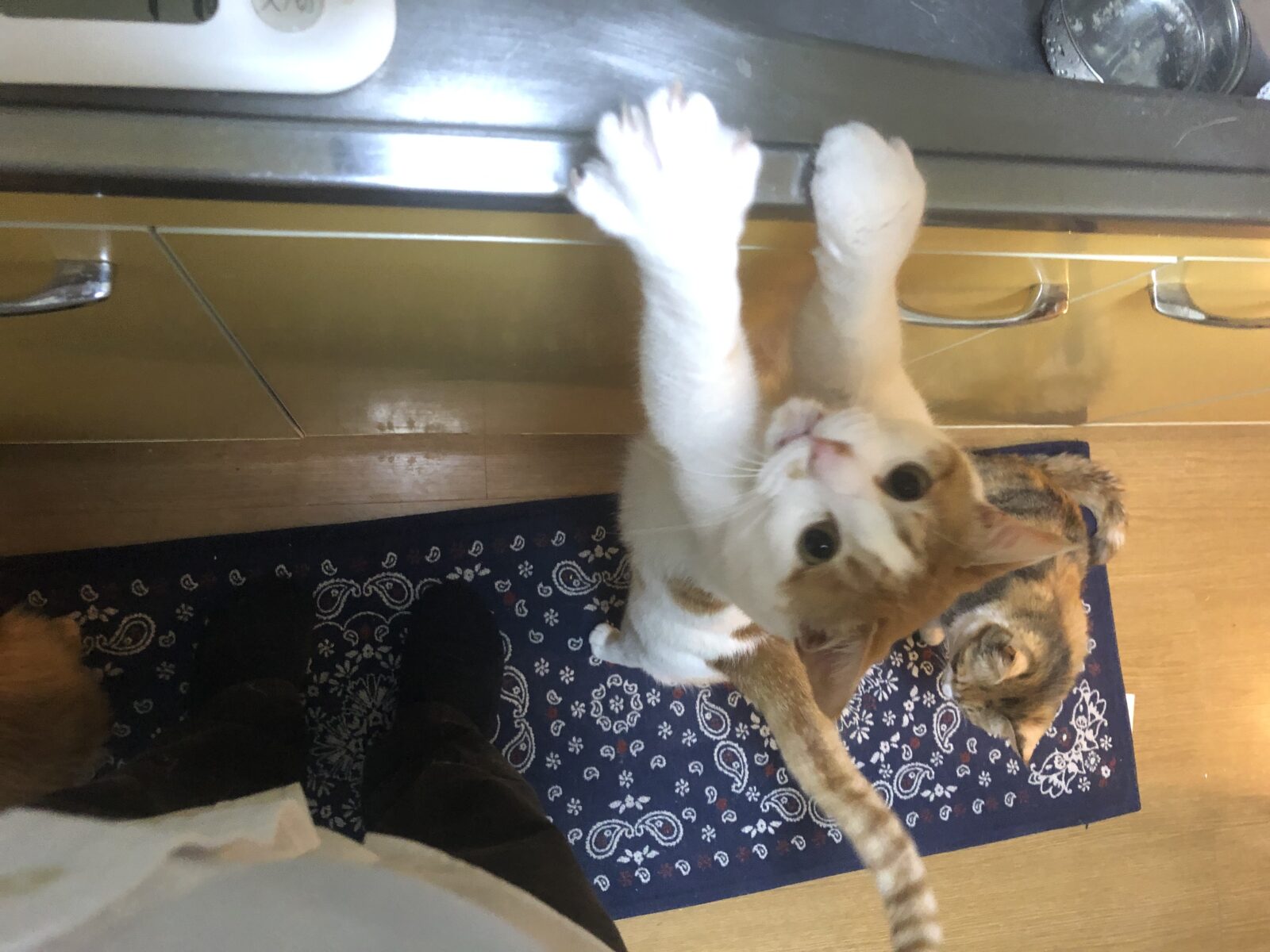 ごはんの準備中、相変わらずほたてくんとうにくんからの圧が凄い!