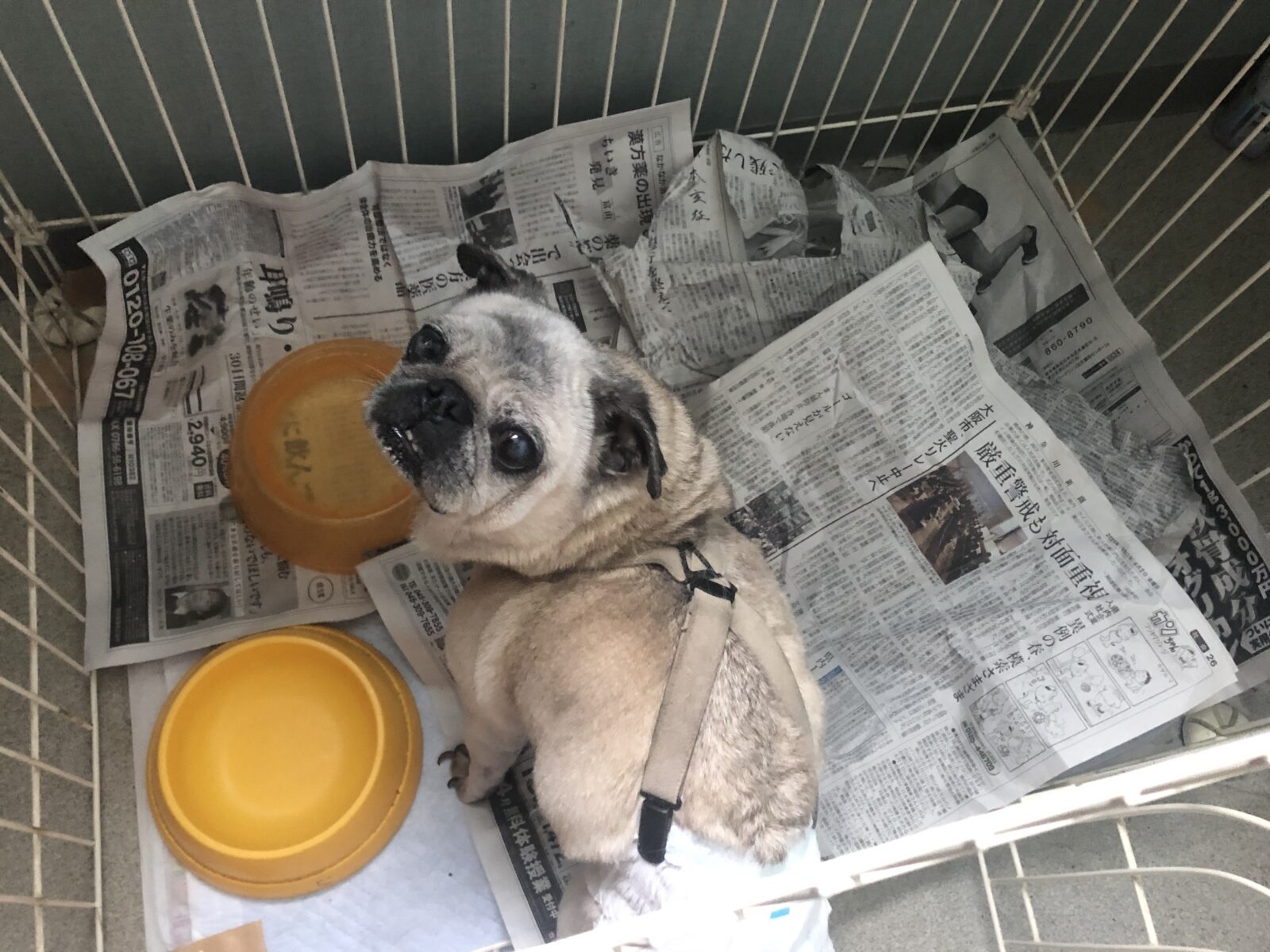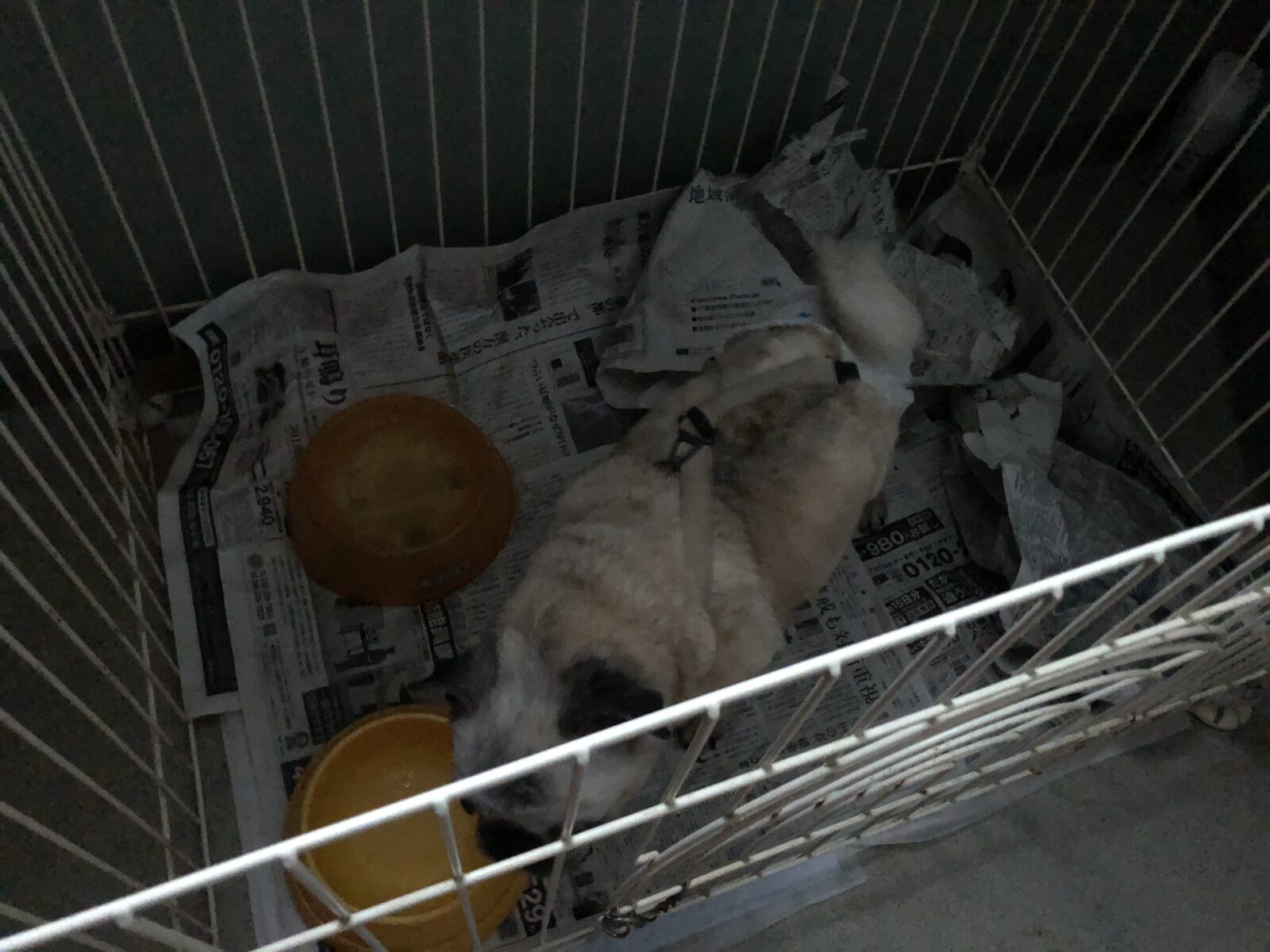 ごはんやお散歩はないのですが、小町ちゃんを一旦ケージに