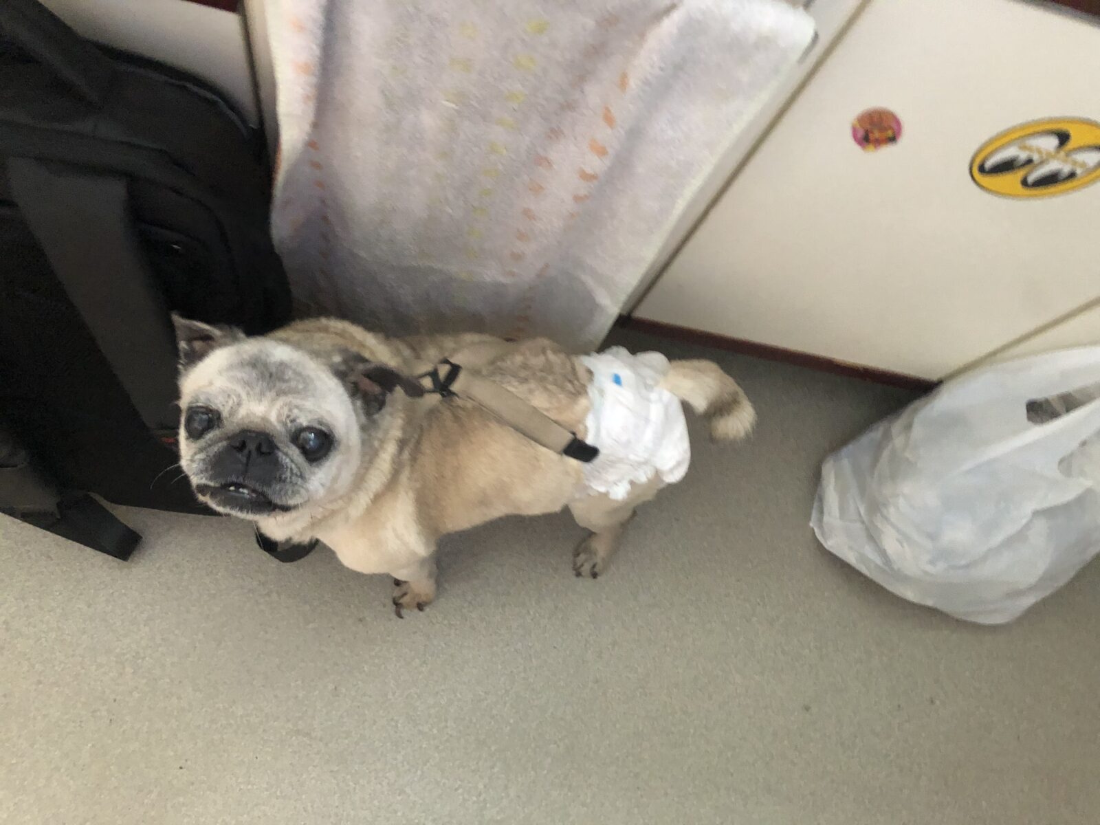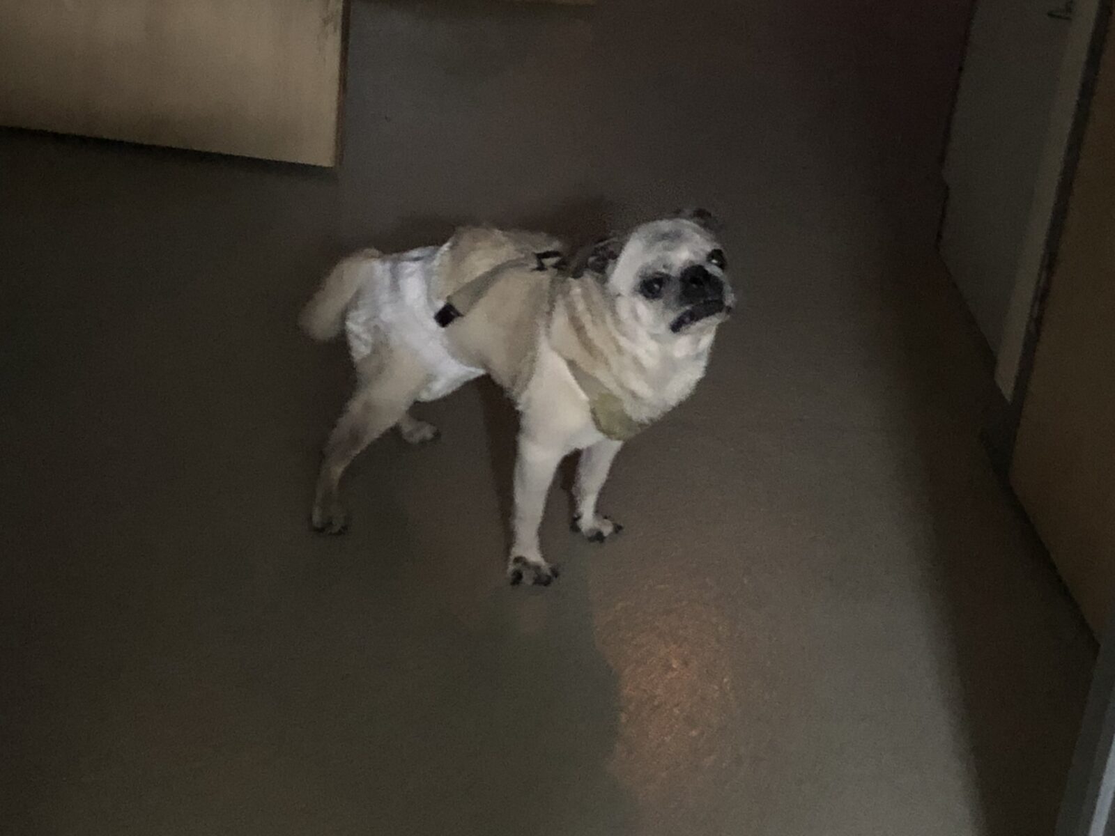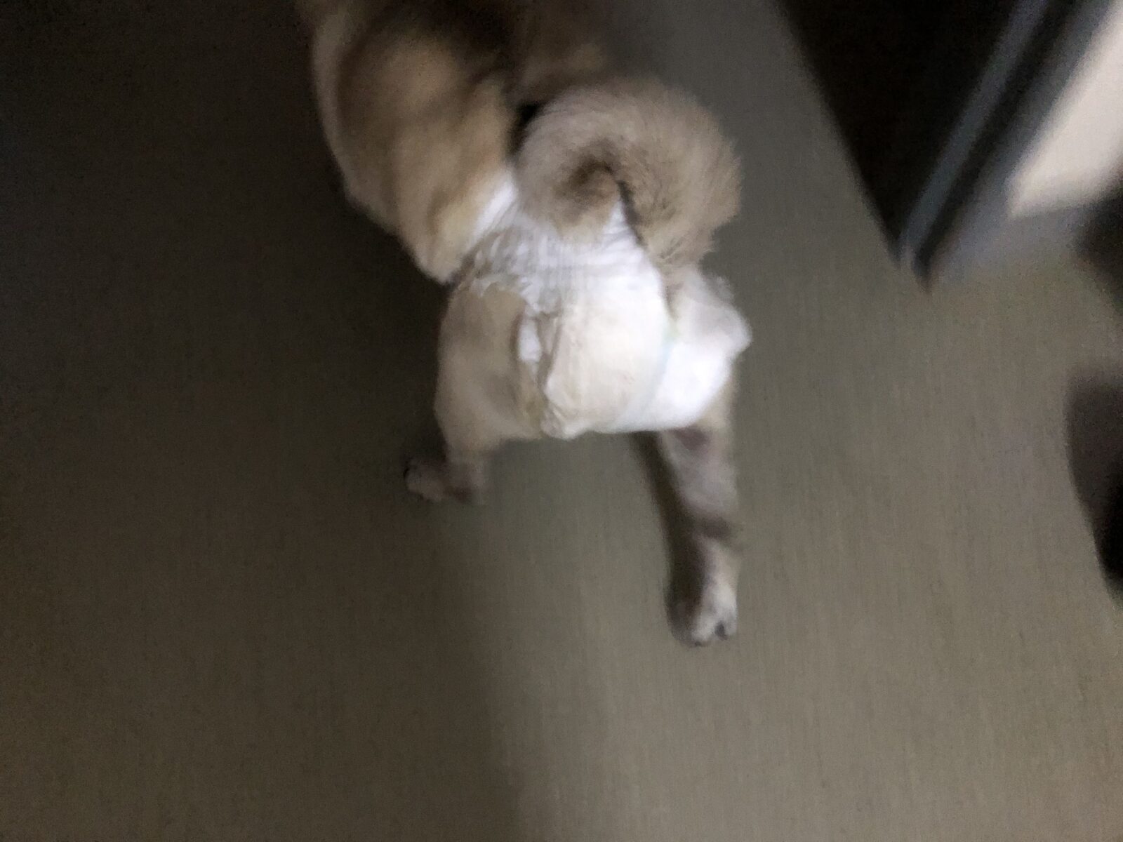 散歩から帰ってくると、新しいオムツをはいてもらってからおうちの中へ。