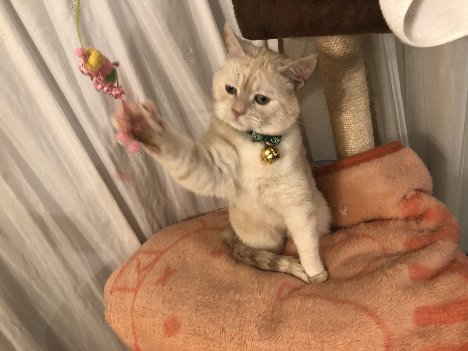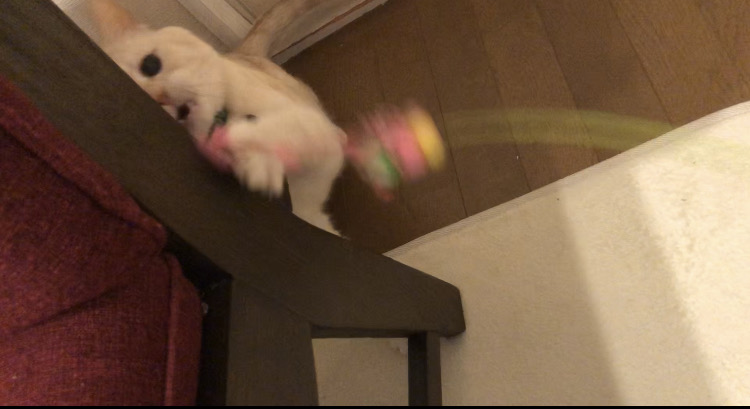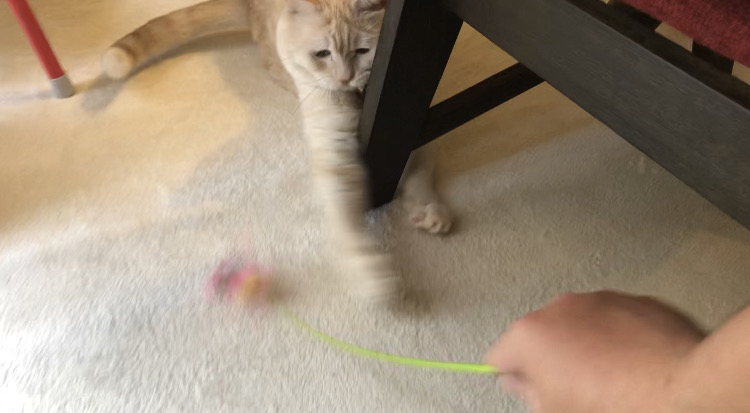いざおもちゃをフリフリすると、なかなかの勢いで食いついてきました^^