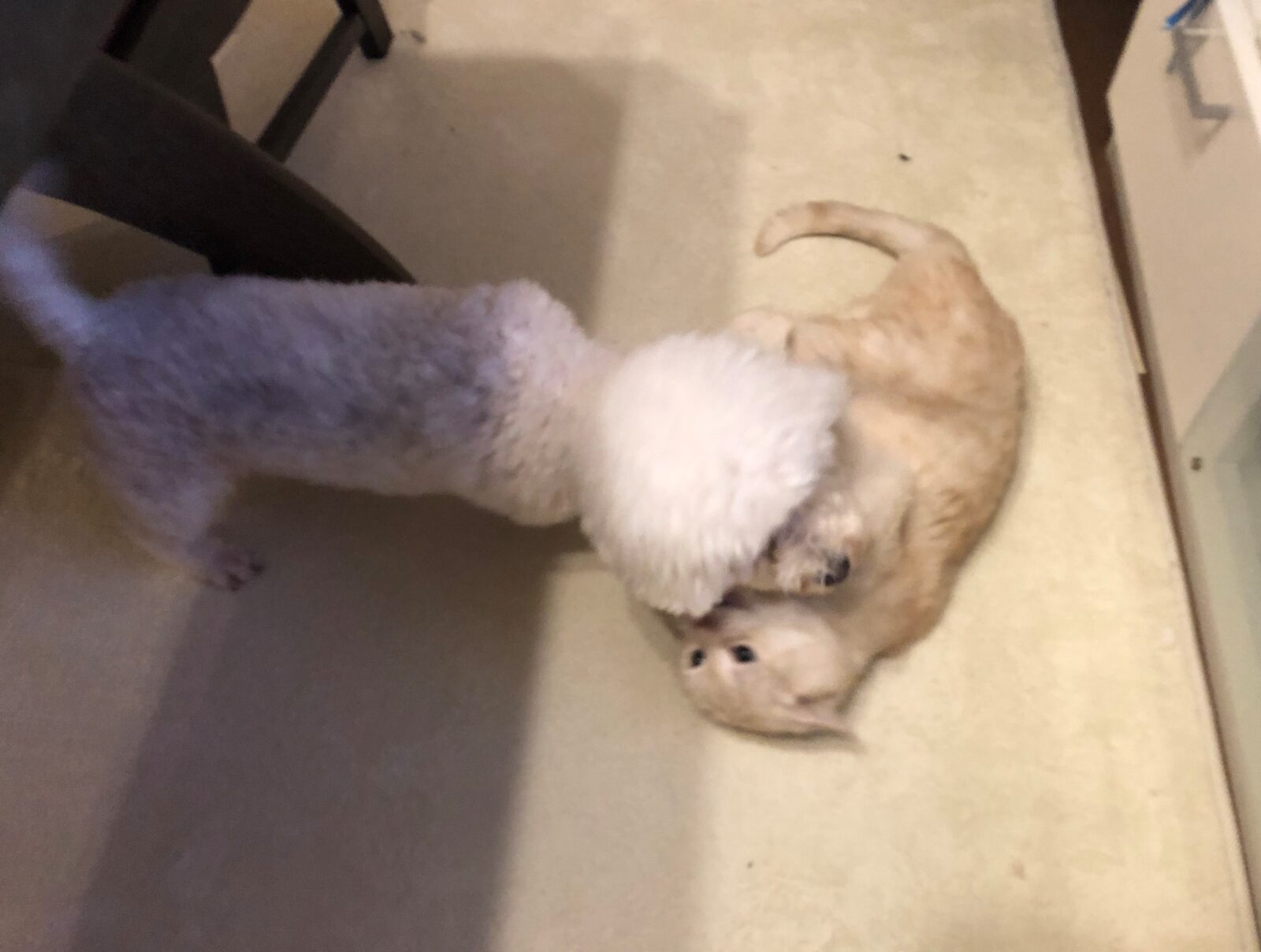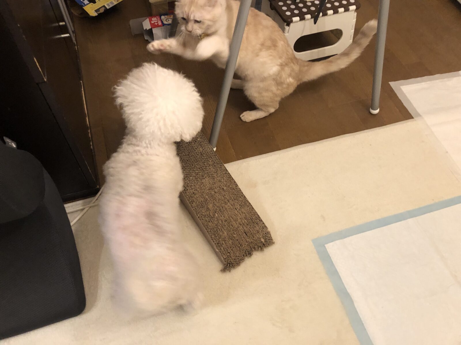 とと丸くんをケージから出すと、ぽんずちゃんがとと丸くんに