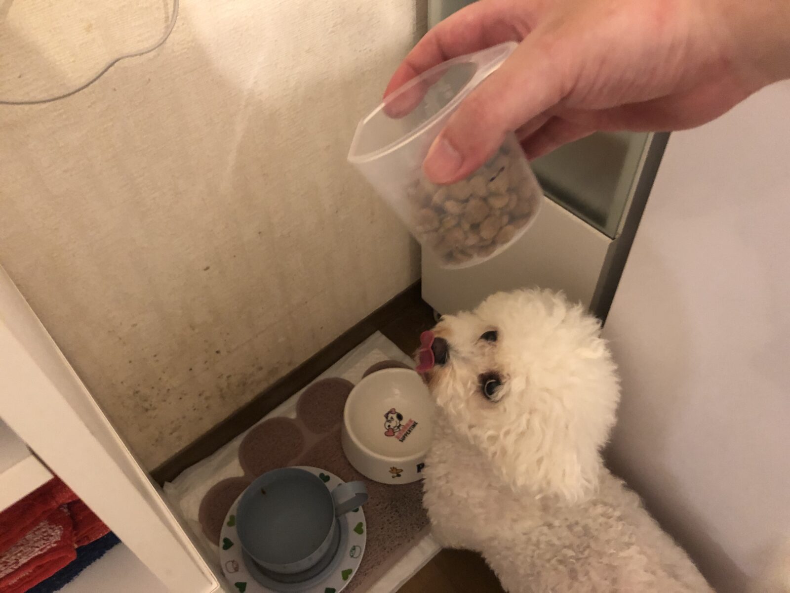 ごはんのカリカリはお皿に入れるまで待っていてくれるのですが、