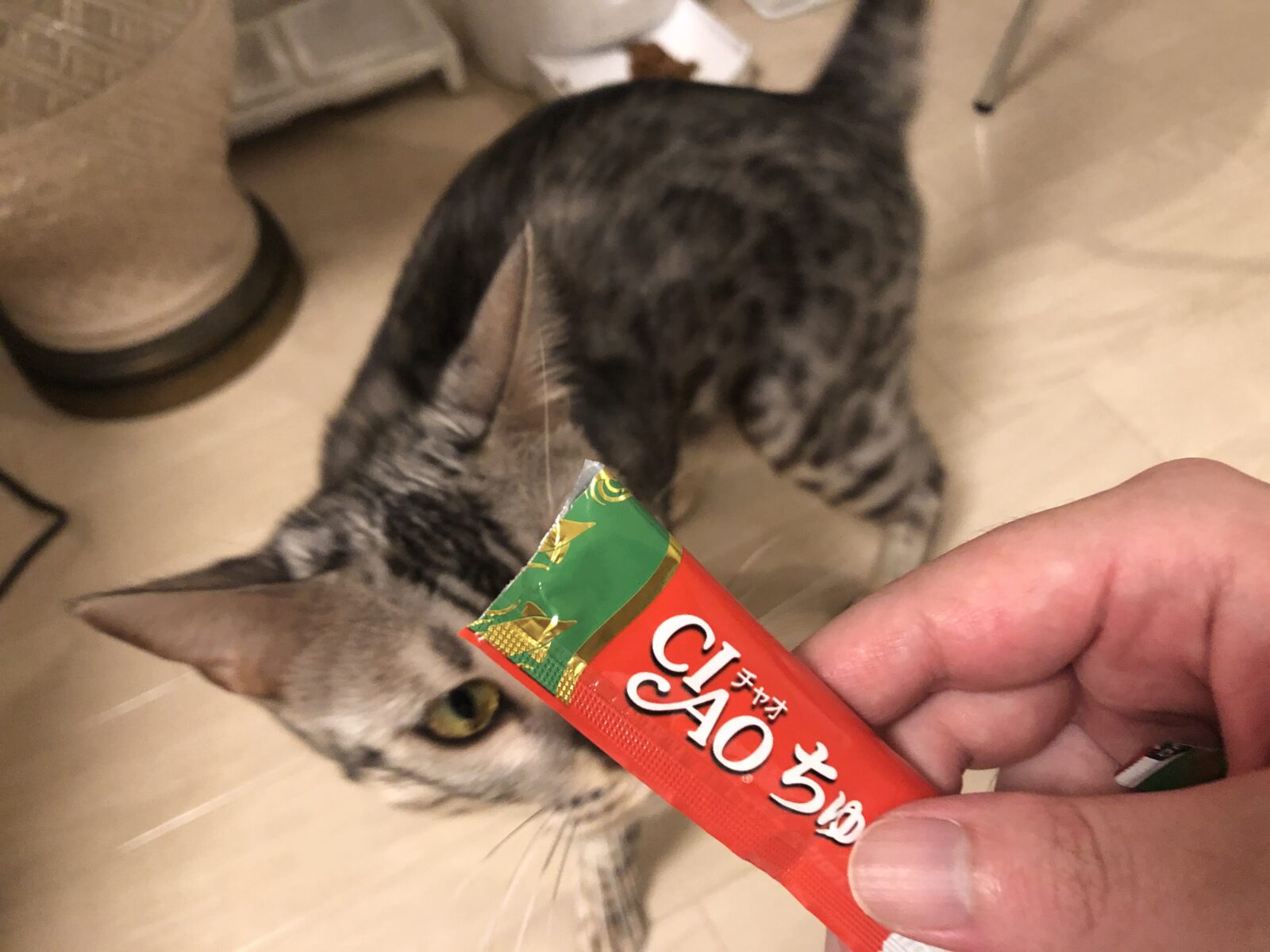 そしてちゅーるの準備をし始めるとすぐに近づいてきてベタベタし出し、