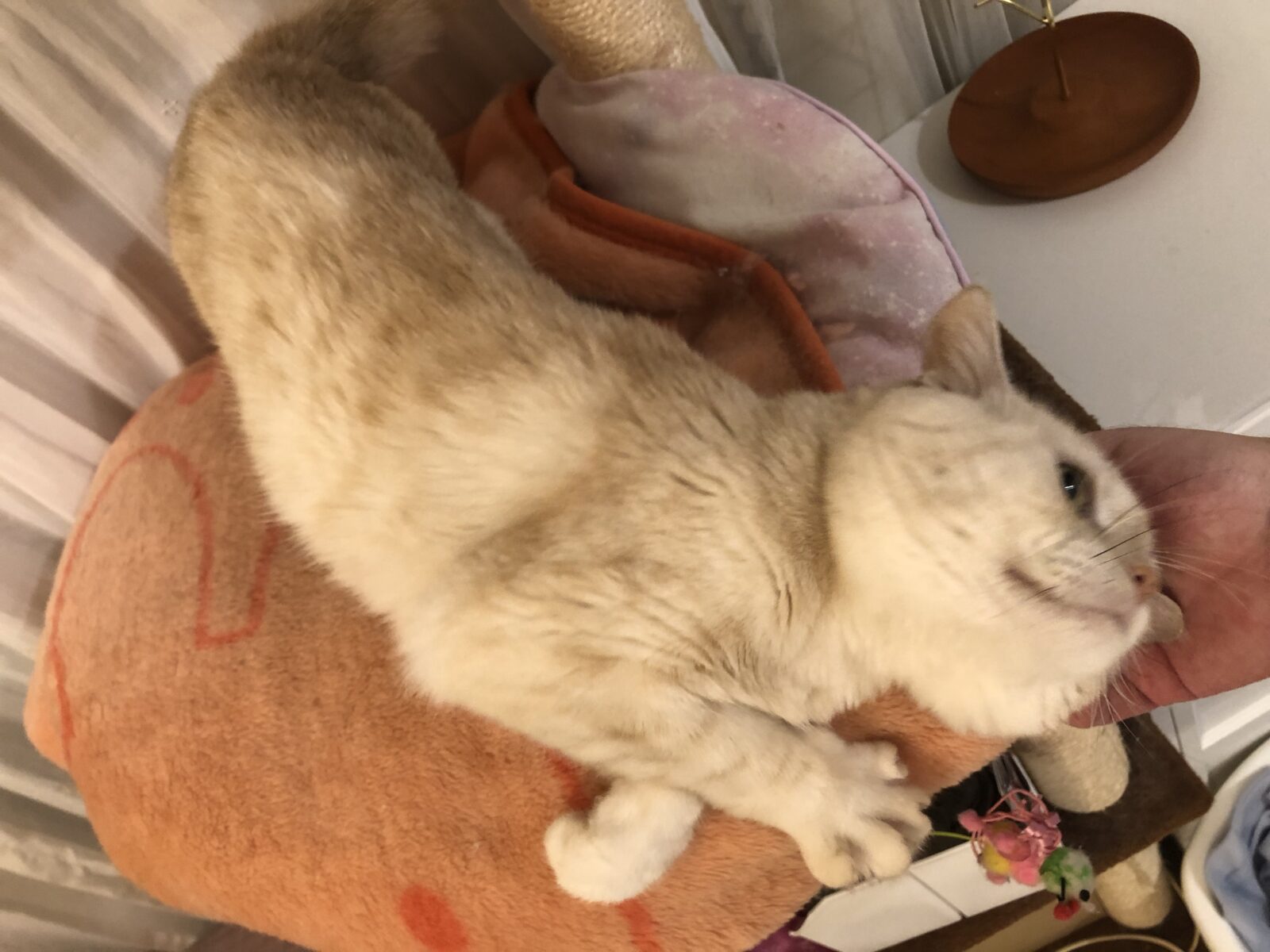 撫でるのをやめると、すぐに物欲しそうな目で見つめてきてズルいです(*’ー’*)